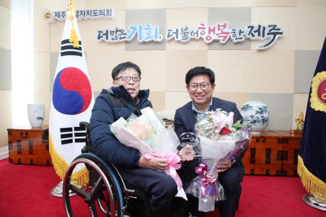 [½Ã»çÁ¾ÇսŹ® = °í¼º¹Î ±âÀÚ] »ç´Ü¹ýÀÎ Á¦ÁÖÀå¾ÖÀÎÀÎ±ÇÆ÷·³(´ëÇ¥ ±è¼º¿Ï)ÀÌ ¼±Á¤ÇÑ ¡®Á¦11´ë Á¦ÁÖÆ¯º°ÀÚÄ¡µµÀÇȸ ÈĹݱâ Àå¾ÖÀÎÁ¤Ã¥ ÃÖ¿ì¼ö ÀÇ¿ø¡¯À¸·Î Á¦ÁÖÆ¯º°ÀÚÄ¡µµÀÇȸ ±è°æÇÐ ÀÇÀå ¼±Á¤¿¡ µû¸¥ ½Ã»ó½ÄÀÌ 2023. 1. 6.(±Ý) Á¦ÁÖÆ¯º°ÀÚÄ¡µµÀÇȸ(ÀÇÀå ±è°æÇÐ) ÀÇÀå Áý¹«½Ç¿¡¼ °³ÃֵǾú´Ù.