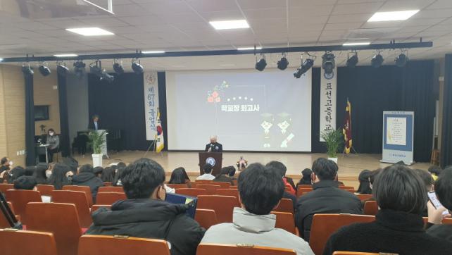 [½Ã»çÁ¾ÇսŹ® = °í¼º¹Î ±âÀÚ] Ç¥¼±°íµîÇб³(±³Àå ÀÓ¿µ±¸)´Â Áö³­ 1¿ù 6ÀÏ ±³³» µ¿Çà°ü¿¡¼­ Á¹¾÷»ýµé 97¸í°ú Çкθð, ³»ºó ¸ðµÎ Âü¼®ÇÑ °¡¿îµ¥ Á¦66ȸ Á¹¾÷½ÄÀ» °³ÃÖÇß´Ù.