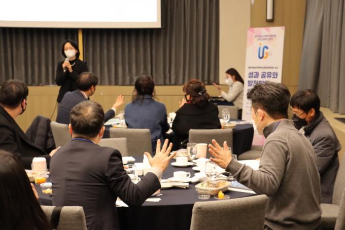 ÇÑÆí, Â÷¼ºÇö ´ëÇб³À°Çõ½Åº»ºÎÀåÀº ¡°ÀÌ ¿öÅ©¼óÀ» ÅëÇØ ´ëÇб³À°Çõ½ÅÀÇ Âü¿© ÁÖü °£ ´Ù¾çÇÑ Á¤º¸ ±³·ù ¹× ÈÇÕÀÇ ÀåÀ» ¸¶·ÃÇÏ´Â µ¿½Ã¿¡ 1´Ü°è »ç¾÷ °³¼±»çÇ× ¹× 2´Ü°è »ç¾÷ ¹ßÀü¹æ¾ÈÀ» ¸ð»öÇÒ ¼ö ÀÖ¾ú´Ù¡±¸ç ¡°³²Àº 3´Þ µ¿¾È »ç¾÷ ¸¶¹«¸®¸¦ À§ÇØ ¹®Á¦Á¡À» Áø´Ü¡¤ºÐ¼®ÇØ ÇâÈÄ 4Â÷ ³âµµ »ç¾÷ °èȹ¿¡ Àß ¹Ý¿µÇÏ¿© ´ÙÀ½ ´Ü°è Æò°¡¿¡ ´ëÀÀÇÒ ¼ö ÀÖ°Ô ÇÔ²² ³ë·ÂÇØº¸ÀÚ¡±°í ¸»Çß´Ù.