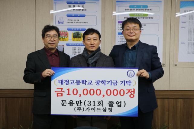 [½Ã»çÁ¾ÇսŹ® = °í¼º¹Î ±âÀÚ] ´ëÁ¤°íµîÇб³(±³Àå °­Ã¢¿ì) Á¦31ȸ Á¹¾÷»ýÀÎ ¹®¿ë¸¸ µ¿¹®Àº 1¿ù 9ÀÏ ¸ð±³¸¦ ¹æ¹®ÇØ ±³Àå½Ç¿¡¼­ ÀåÇÐ±Ý 1õ¸¸ ¿øÀ» Àü´ÞÇß´Ù.