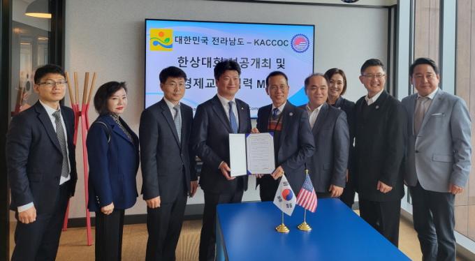 ¾÷¹«Çù¾à½Ä¿¡¼ ¹Úâȯ Àü³²µµ Á¤¹«ºÎÁö»ç´Â ¡°Áö³ 2019³â Á¦18Â÷ ¼¼°èÇÑ»ó´ëȸ°¡ Àü³²¿¡¼ ¿·Á 2¾ï ´Þ·¯ÀÇ ºñÁî´Ï½º ¼º°ú»Ó¸¸ ¾Æ´Ï¶ó, 3¸¸¿© °ü¶÷°´ÀÌ ´Ù³à°¡´Â µî Áö¿ª°æÁ¦ Ȱ¼ºÈ¿¡ Å©°Ô ±â¿©Çß´Ù¡±¸ç ¡°À̹ø ¾÷¹«Çù¾àÀ¸·Î ¼¼°è ºñÁî´Ï½º Á᫐ ¹«´ëÀÎ ¹Ì±¹¿¡ µçµçÇÑ ÆÄÆ®³Ê¸¦ È®º¸ÇÑ ¸¸Å ¿©·¯ ºÐ¾ß¿¡¼ »óÈ£ ±³·ù¿Í Çù·ÂÀ» È®´ëÇϰڴ١±°í ¸»Çß´Ù.