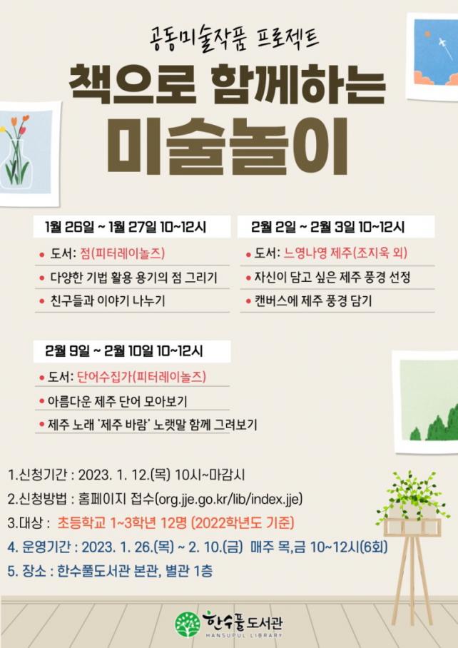 [½Ã»çÁ¾ÇսŹ® = °í¼º¹Î ±âÀÚ] ÇѼöÇ®µµ¼­°ü(°üÀå °í·ç½Ã¾Æ)Àº ¾î¸°À̵éÀÌ Ã¥ ¼Ó¿¡¼­ ´Ù¾çÇÑ ÁÖÁ¦¸¦ ã¾Æ³»°í À̸¦ ±×¸²À¸·Î Ç¥ÇöÇÔÀ¸·Î½á âÀǷ°ú »ó»ó·ÂÀ» Ű¿ï ¼ö ÀÖ´Â ±âȸ¸¦ Á¦°øÇϰíÀÚ¡®Ã¥À¸·Î ÇÔ²² ¸¸µå´Â ¹Ì¼ú³îÀÌ¡¯ÇÁ·Î±×·¥ Âü°¡ÀÚ¸¦ ¸ðÁýÇÑ´Ù.
