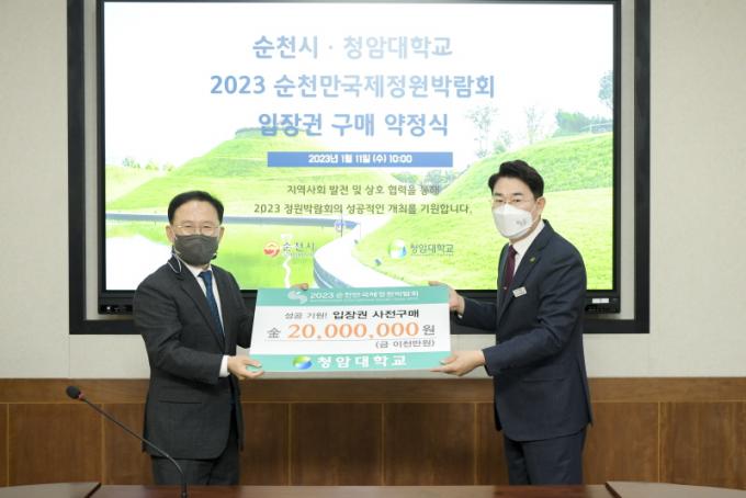 À̳¯ Çà»ç´Â ±è¼ºÈ« ÃÑÀåÁ÷¹«´ëÇà°ú ´ëÇÐ °ü°èÀÚ, ³ë°ü±Ô ½ÃÀå°ú Ȳ¿µÁø Á¶Á÷À§ °ü¶÷°´ À¯Ä¡ºÎÀå, Á¶ÅÂÈÆ ¹Ì·¡»ê¾÷±¹Àå, ½ÅÀº¼÷ Æò»ý±³À°°úÀå µî ½Ã ÁÖ¿ä °ü°èÀÚ°¡ Âü¼®ÇßÀ¸¸ç, û¾Ï´ëÇб³´Â ÀÔÀå±Ç 2,000¸¸¿ø ±¸¸Å¾àÁ¤À» ÅëÇØ 2023 ¼øÃµ¸¸±¹Á¦Á¤¿ø¹Ú¶÷ȸÀÇ ¼º°øÀûÀÎ °³ÃÖ¸¦ ´ëÇÐ ±¸¼º¿ø ¸ðµÎ¿Í ÇÔ²² ±â¿øÇß´Ù.