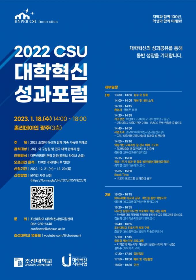À̹ø Æ÷·³Àº ÇöÀå ´ë¸éÇà»ç¿Í ´õºÒ¾î ¿Â¶óÀÎ »ýÁß°è°¡ Á¶¼±´ëÇб³ °ø½Ä À¯Æ©ºê ä³ÎÀ» ÅëÇØ ¼ÛÃâµÇ¸ç, ¡®2022 ÃÊ¿ùÀû Çõ½Å°ú ÇÔ²² Áö¼Ó °¡´ÉÇÑ ¹Ì·¡·Î¡¯¶ó´Â ÁÖÁ¦·Î ±³³»¡¤¿Ü ±¸¼º¿øÀÌ 120¿©¸í ÇöÀå¿¡ Âü¼®ÇÒ ¿¹Á¤ÀÌ´Ù. Æ÷·³Àº 2ÁÖ±â 2022 1Â÷³âµµ ´ëÇÐÇõ½ÅÁö¿ø»ç¾÷ ³»¿ë ¹× ÃßÁø ¼º°ú Á¤º¸ÀÇ ´ë³»¿Ü °øÀ¯¸¦ À§ÇØ ¸¶·ÃµÆ´Ù.