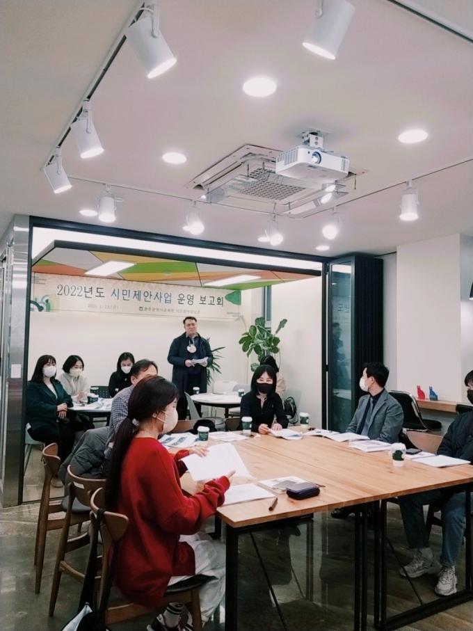 º¸°íȸ¿¡ Âü¼®ÇÑ ½Ã¹ÎÂü¿©¿¹»êÀ§¿øÈ¸ ¼¼º±â À§¿øÀåÀº ¡°Äڷγª19¶ó´Â ¾î·Á¿î »óȲ¿¡¼µµ ÇÔ²² ¸Ó¸®¸¦ ¸Â´ë°í ¼ÒÅ롤Çù·ÂÇØ ¸ÚÁö°Ô »ç¾÷À» ¿î¿µÇÑ ±³À°°øµ¿Ã¼ÀÇ ³ë·ÂÀ» ´À³¥ ¼ö ÀÖ¾ú´Ù¡±¸ç ¡°±¤ÁÖ±³À°¹ßÀüÀ» À§ÇØ ±³À°ÀçÁ¤¿¡ ½Ã¹ÎÂü¿©°¡ ´õ¿í Àû±ØÀûÀ¸·Î ÀÌ·ïÁö±æ ¹Ù¶õ´Ù¡±°í ¹àÇû´Ù.