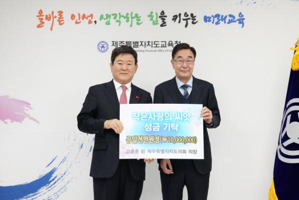 [½Ã»çÁ¾ÇսŹ® = °í¼º¹Î ±âÀÚ] °íÃæÈ« îñ Á¦ÁÖÆ¯º°ÀÚÄ¡µµÀÇȸ ÀÇÀåÀÌ 1¿ù 17ÀÏ(È­)¡®ÀÛÀº »ç¶ûÀÇ ¾¾¾Ñ¡¯¼º±ÝÀ¸·Î 1õ¸¸¿øÀ» ±âŹÇß´Ù.