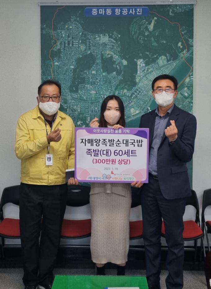 ÇÑÆí, Á߸¶µ¿Àº Áö¿ª ³» ½Ä·áǰ °¡°Ô¡¤À½½ÄÁ¡ 10¿© °³ ´Üü¿¡¼ 4,600¸¸ ¿ø »ó´çÀÇ ½Ä·áǰÀ» ±âºÎ¹Þ¾Æ, »ýȰÀÌ ¾î·Á¿î °¡Á¤°ú º¹Áö »ç°¢Áö´ë¿¡ ÀÖ´Â °¡Á¤À» ¿¬°èÇØ ³ª´®À» º£Ç®°í ÀÖÀ¸¸ç Áö¼ÓÀûÀÎ ±âºÎ¹®È Ȱ¼ºÈ¿¡ ¾ÕÀå¼°í ÀÖ´Ù. ±âºÎ Àǻ簡 ÀÖ´Â °³ÀÎÀ̳ª ´Üü´Â Á߸¶µ¿ ¸ÂÃãÇüº¹ÁöÆÀ(¢Ï 061-797-4706)¿¡ ¿¬¶ôÇÏ¸é µÈ´Ù.