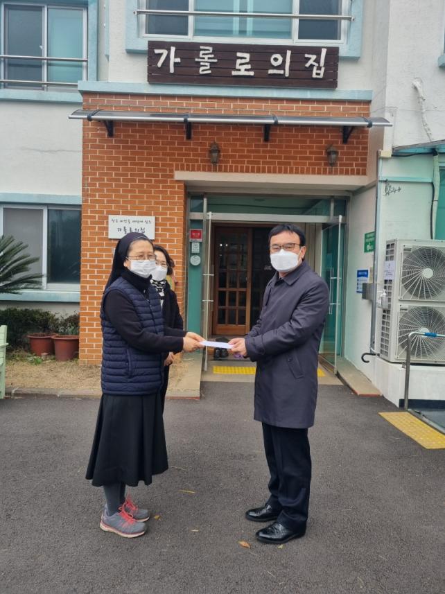 [½Ã»çÁ¾ÇսŹ® = °í¼º¹Î ±âÀÚ] Á¦ÁÖ±¹Á¦±³À°¿ø(¿øÀå Á¤¼ºÁß)Àº Áö³ 1¿ù 20ÀÏ Á¦Áֽà ȺÏÀ̵¿¿¡ À§Ä¡ÇÑ¡®°¡·Ñ·ÎÀÇÁý(¿øÀå ³²¼±Èñ ¼ö³à)¡¯À» ¹æ¹®ÇÏ¿© ½Ã¼³ °ü°èÀÚ ¹× ÀÔ¼ÒÀÚµéÀ» °Ý·ÁÇϰí Àü Á÷¿øÀÌ ÀÚÀ²ÀûÀ¸·Î ¸ð±ÝÇÑ ¼³¸ÂÀÌ À§¹®±ÝÀ» Àü´ÞÇß´Ù.