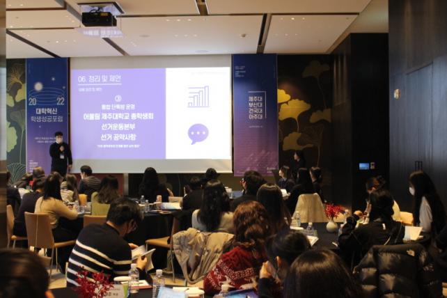 Á¦ÁÖ´ë ´ëÇÐÇõ½ÅÁö¿ø»ç¾÷´ÜÀÌ ÁÖ°üÇÑ À̹ø Çà»ç´Â °ÅÁ¡±¹¸³´ë 2°³¼Ò(ºÎ»ê´ë, Á¦ÁÖ´ë)¿Í ¼öµµ±Ç »ç¸³´ë 2°³¼Ò(°Ç±¹´ë, ¾ÆÁÖ´ë) ÇлýµéÀÌ ¸ð¿© ´ëÇÐÀÇ ±³À°Çõ½Å ¿ì¼ö»ç·Ê¸¦ °øÀ¯ÇÏ´Â ¼º°úÈ®»ê Æ÷·³À¸·Î, Á¦ÁÖ´ë ±¹Á¦°³¹ßÇù·Â¼¾ÅÍ ½ÅÀÇö ¼¾ÅÍÀåÀÇ ±âÁ¶°¿¬ ¡®Áö¼Ó°¡´É¹ßÀü¸ñÇ¥¿Í ´ëÇÐÀÇ ¹æÇ⡯À» ÇʵηΠ¡®Çлý ¼Æ÷ÅÍÁî Ȱµ¿ ¼º°ú ¹× ¿ì¼ö Çлý ÇÁ·Î±×·¥ »ç·Ê¡¯¸¦ °øÀ¯ÇÏ´Â Çлý Á᫐ Æ÷·³À¸·Î ÁøÇàµÆ´Ù.