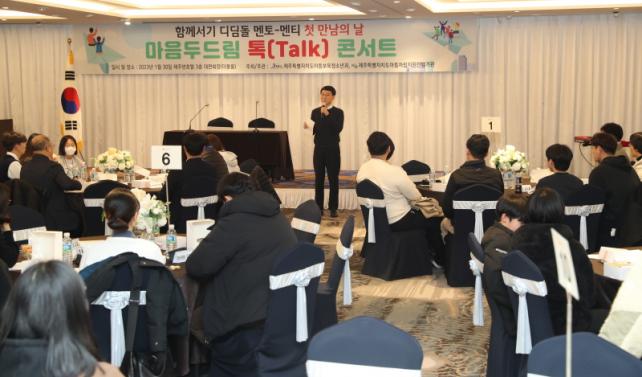 Á¦ÁÖµµ´Â 30ÀÏ ¿ÀÈÄ 2½Ã Á¦ÁÖ½ã È£ÅÚ¿¡¼ ÀÚ¸³Áغñû³âÀÇ ½É¸®・Á¤¼Àû º¸È£ µî »çȸÀû ÁöÁöü°è ¸¶·ÃÀ» À§ÇÑ ¸àÅä-¸àƼ °£ ù ¸¸³²ÀÇ ³¯ ¡®¸¶À½µÎµå¸² Åå(TALK) ÄܼƮ¡¯¸¦ ¸¶·ÃÇß´Ù.