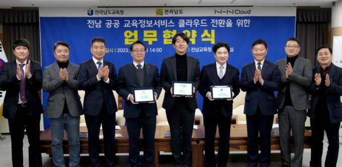 À̳¯ Çù¾à½Ä¿¡´Â ¹®±ÝÁÖ Àü³²µµ ÇàÁ¤ºÎÁö»ç, ±è´ëÁß Àü³²µµ±³À°°¨, ±èµ¿ÈÆ NHNŬ¶ó¿ìµå ´ëÇ¥ µî °ü°èÀÚ°¡ Âü¼®Çß´Ù. 3°³ ±â°üÀº Çù¾à¿¡ µû¶ó Àü³²µµ±³À°Ã»¿¡¼ ¿î¿µÇÏ´Â °ø°ø ±³À°Á¤º¸¼ºñ½ºÀÇ Å¬¶ó¿ìµå ÀüȯÀ» À§ÇÑ ¹Î°ü Çù¾÷ ¸ðµ¨À» ±¸ÃàÇϰí, Ŭ¶ó¿ìµå Àüȯ ¹× ±â¼ú Áö¿ø µî¿¡ Çù·ÂÇÑ´Ù.