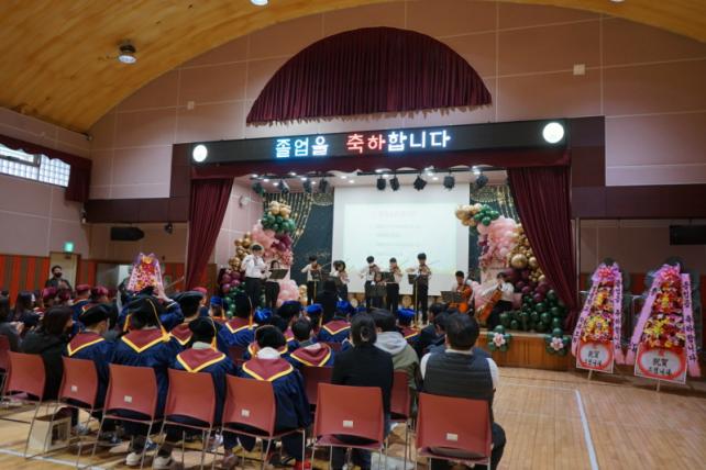 Çкθð¿Í ³»ºóµéÀÌ Âü¼®ÇÑ °¡¿îµ¥, º»±³ ¾Ó»óºíÆÀÀÇ Á¹¾÷½Ä ÃàÇÏ °ø¿¬À» ½ÃÀÛÀ¸·Î Á¹¾÷Àå°ú ǥâ ¼ö¿© ÈÄ Á¹¾÷»ýµéÀÇ Çб³»ýȰ ¸ð½À ¿µ»óÀ» ½ÃûÇß´Ù. ÀÌÈÄ ±³Àå ¼±»ý´ÔÀÇ ÃàÇÏ¿Í °Ý·Â ¸»¾¸, Á¹¾÷»ýÀÇ ¶°³ª´Â Àλç, Á¹¾÷ ³ë·¡ Á¦Ã¢°ú ±³°¡ Á¦Ã¢À¸·Î ÁøÇàµÇ¾ú´Ù.
