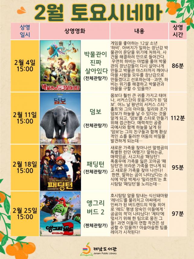 ÇÑÆí, ¼±Á¤µÈ ¿µÈ´Â ¸ÅÁÖ Åä¿äÀÏ ¿ÀÈÄ 3½Ã µµ¼°ü °´ç¿¡¼ ¹«·á »ó¿µµÇ¸ç, ÀÚ¼¼ÇÑ ÀÏÁ¤Àº ºÙÀÓÀÚ·á ¹× È¨ÆäÀÌÁö(https://org.jje.go.kr/lib/index.jje)¸¦ Âü°íÇϰųª ÀüÈ(T.766-4600)·Î ¹®ÀÇÇÏ¸é µÈ´Ù.