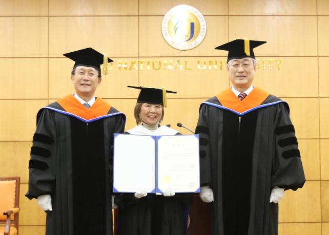 Á¦ÁÖ´ë´Â ¡°¼ ÀÌ»çÀåÀº Á¦Áֿ÷¹¸¦ ÅëÇÑ Á¦ÁÖ¾î¿Í Á¦ÁÖÀÇ µ¶ÀÚÀûÀÎ ¹®È ¼Ò°³, Á¦ÁÖÀÇ »ýȰ°ú ¹®È °ü·Ã Àú¼ú・°¿¬ Ȱµ¿À» ÅëÇØ ¿ì¸®³ª¶ó ±¹¹Îµé°ú ¿©Çà°´µéÀÌ Á¦ÁÖµµ¸¦ Àç¹ß°ß ÇÒ ¼ö ÀÖ´Â °è±â¸¦ ¸¸µé¾î Á¦ÁÖÀÇ ¿ª»ç ¹× ¹®È Ȱ¼ºÈ¿¡ Áö´ëÇÑ °øÇåÀ» Çß°í, ÈÄÇе鿡°Ô »õ·Î¿î ÀÎÀç»ó°ú ¸®´õÀÇ Ç¥»óÀÌ µÇ¾ú±â¿¡ ±× °ø·Î¸¦ ±â·Á À̹ø ¸í¿¹ ¹®ÇÐ ¹Ú»çÇÐÀ§¸¦ ¼ö¿©ÇÏ°Ô µÆ´Ù¡± °í ¹àÇû´Ù.