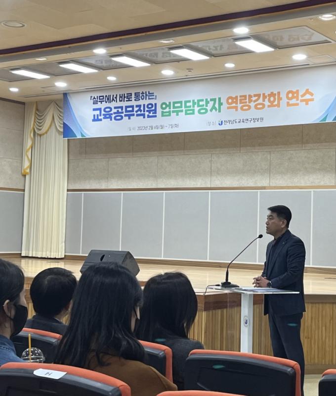 Àü³²µµ±³À°Ã»Àº ÀλçÀ̵¿À¸·Î ±³À°°ø¹«Á÷ ¾÷¹«¸¦ »õ·Î ¸ÃÀº ´ã´çÀÚµéÀÇ ¾ÈÁ¤Àû ¾÷¹« Á¤ÂøÀ» À§ÇØ ÅðÁ÷±Ý »êÁ¤°ú ¿¬Â÷¼ö´ç Á¤»ê µî ½Ç¹«¿¡ ¹Ù·Î Àû¿ëÇÒ ¼ö ÀÖ´Â »ç·ÊÁ᫐ ±³À°À¸·Î À̹ø ¿¬¼ö¸¦ ÁøÇàÇß´Ù.