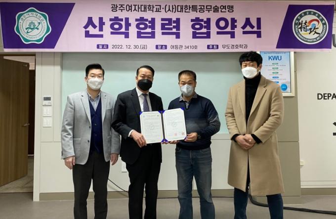 Çù¾à½Ä¿¡´Â ¹«µµ°æÈ£Çаú ÇаúÀå ¹ÚÁ¾·Ä ±³¼ö¿Í ÃÖ¿¬ÁØ ±³¼ö, (»ç)´ëÇÑÆ¯°ø¹«¼ú¿¬¸Í ±èżö °üÀå, (»ç)´ëÇÑÆ¯°ø¹«¼ú¿¬¸Í ±¤ÁÖº»°ü ±èµ¿±Õ °üÀåÀÌ Âü¼®ÇÏ¿© Çù¾à½ÄÀ» °¡Á³´Ù.