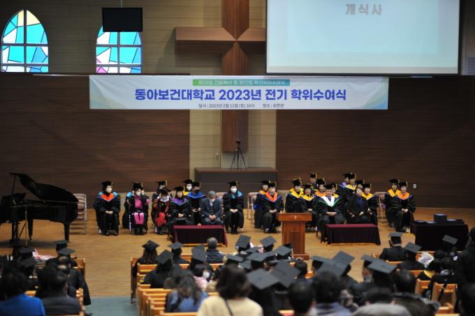 µ¿¾Æº¸°Ç´ëÇб³ ÀÌÇöÁÖ ÃÑÀåÀº ÇÐÀ§¼ö¿©½Ä¿¡¼ ¡°»õ·Î¿î ÀλýÀÇ Ã¹ ¹ßÀ» ³»µó´Â ¿©·¯ºÐÀ» Áø½ÉÀ¸·Î ÃàÇÏÇÏ¸ç ´ëÇÐÀº Á¹¾÷»ý ¿©·¯ºÐ ¾Õ¿¡ ÆîÃÄÁø ¹«ÇÑÇÑ °¡´É¼º°ú ±âȸ¸¦ ¿ÂÀüÈ÷ ¿©·¯ºÐÀÇ °ÍÀ¸·Î ¸¸µé¾î ¿ì¸® »çȸ¿¡¼ ²À ÇÊ¿äÇÑ ÀÎÀç·Î ¼ºÀåÇØ ³ª°¡±æ ÀÀ¿øÇÑ´Ù¡±¸ç »õ·Î¿î ½ÃÀÛÀ» ¾ÕµÐ Á¹¾÷»ýµéÀÇ ¾Õ³¯À» °Ý·ÁÇÏ¿´´Ù.