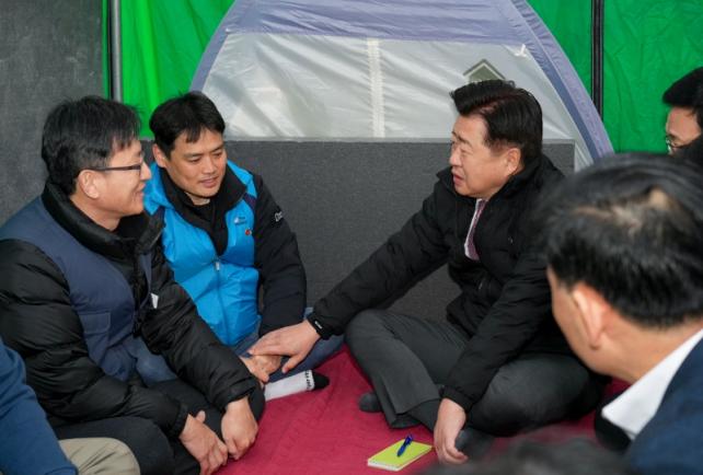 ¼Ò°¢Àå ±Ù¹« ³ëµ¿ÀÚµéÀº ¹Î°£À§Å¹ Á¾·á¸¦ ¾ÕµÎ°í Á¦ÁÖµµ¿¡ °í¿ë¹®Á¦ ÇØ°áÀ» ¿ä±¸Çϸç Áö³ 2022³â 11¿ù 7ÀϺÎÅÍ µµÃ» ¾Õ¿¡ õ¸·À» ¼³Ä¡ÇÏ°í ¹«±âÇÑ ³ó¼ºÀ» ½ÃÀÛÇß´Ù.