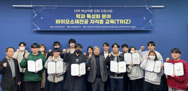 Á¦ÁÖµµÀÇ 2022 ´ëÇÐÇٽɿª·®°ÈÁö¿ø»ç¾÷(ÇаúƯ¼ºÈºÎºÐ) Áö¿øÀ» ¹Þ¾Æ Á¦ÁÖ´ë ¹ÙÀÌ¿À¼ÒÀçÀü°ø¿¡¼ ÁÖ°üÇÑ À̹ø ÇÁ·Î±×·¥Àº ÃֽŠÁö½ÄÀç»ê ±âÃÊÀÌ·ÐÀÎ TRIZ¸¦ Ȱ¿ëÇÏ¿© âÀÇÀû ¾ÆÀ̵ð¾î âÃâÀ» À§ÇÑ ÀýÂ÷¿Í ±â¹ý µî¿¡ ´ëÇÑ ½Ç½ÀÀ» ÁøÇàÇÏ¿© ´ëÇÐ(¿ø)»ý 12¸íÀÌ ¼ö·áÇß´Ù.