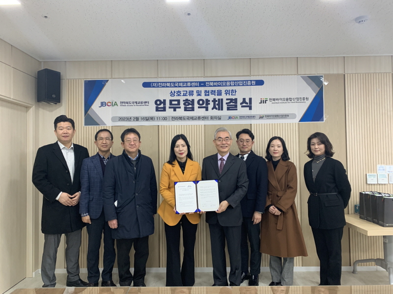 Àü¶óºÏµµ±¹Á¦±³·ù¼¾ÅÍ È¸Àǽǿ¡¼ ÁøÇàµÈ Çù¾à½Ä¿¡´Â ÀüºÏ¹ÙÀÌ¿ÀÀ¶ÇÕ»ê¾÷ÁøÈï¿ø ÀÌÀº¹Ì ¿øÀå, ¹Ú¿ì¼º º»ºÎÀå, Àü¶óºÏµµ±¹Á¦±³·ù¼¾ÅÍ ±è´ë½Ä ¼¾ÅÍÀå µîÀÌ Âü¼®Çß´Ù.