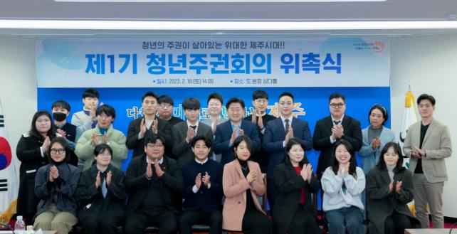 Á¦1±â Á¦ÁÖû³âÁÖ±ÇȸÀÇ À§Ã˽ÄÀÌ 18ÀÏ ¿ÀÈÄ 2½Ã Á¦ÁÖµµÃ» »ï´ÙȦ¿¡¼ ¿·È´Ù. ¿ÃÇØ óÀ½À¸·Î ±¸¼ºµÈ Á¦1±â Á¦ÁÖû³âÁÖ±ÇȸÀÇ´Â Á¦7±â û³â¿øÅ¹È¸ÀÇ Âü¿©ÀÚ 20¸í, ¿ÜºÎ Àü¹®°¡ 3¸í µî ÃÑ 23¸íÀ¸·Î ±¸¼ºµÆÀ¸¸ç, À§Ã˽ÄÀ» ½ÃÀÛÀ¸·Î ³»³â 2¿ù 3ÀϱîÁö 1³â¿© °£ ¿î¿µµÈ´Ù.