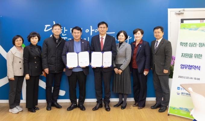 ±¤Áֽñ³À°Ã»°ú ±¤Áֱ⵶º´¿øÀº ½É¸®¡¤Á¤¼ÀûÀ¸·Î ¾î·Á¿òÀ» °Þ°í ÀÖ´Â À§±â Çлý Áö¿ø¿¡ ¶æÀ» ¸ð¾Ò´Ù. ƯÈ÷ Áø´Ü¡¤»ó´ã¡¤Ä¡·á¡¤±³À° µî¿¡ °üÇÑ ÇÁ·Î±×·¥ Áö¿øÀ» ÅëÇØ ¸¶À½ÀÌ ÇູÇÑ Çб³»ýȰÀ» ¸¸µé¾î°¡´Â µ¥ »óÈ£ Çù·ÂÇϱâ·Î Çß´Ù. ÃÖ±Ù ½É¸®¡¤Á¤¼ÀûÀ¸·Î Èûµé¾îÇÏ´Â ÇлýÀÌ Á¡Á¡ Áõ°¡Çϰí ÀÖ´Ù. ÀÌ¿¡ ½Ã±³À°Ã»Àº Á¤¼ÀûÀ¸·Î Èûµç ÇлýÀ» ¾î¶»°Ô Çϸé ü°èÀûÀ̰í È¿°úÀûÀ¸·Î °ü¸® ¹× Áö¿øÀ» ÇÒ ¼ö ÀÖÀ»Áö ´Ù°¢ÀûÀ¸·Î Á¤Ã¥À» ¸ð»öÇß´Ù.
