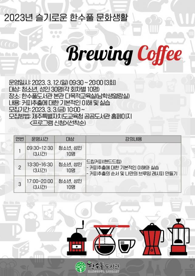 ½½±â·Î¿î ÇѼöÇ® ¹®È»ýȰÀº ´Ù¾çÇÑ °ø¿¹ ÇÁ·Î±×·¥À» Ȱ¿ëÇÑ ¿øµ¥ÀÌŬ·¡½º¸¦ ¿î¿µÇÏ´Â ÇÁ·Î±×·¥À¸·Î 3¿ù 11ÀÏ(ÀÏ)¿¡´Â ³ª¸¸ÀÇ ºê·çÀ× Ä¿ÇǸ¦ ÁÖÁ¦·Î Ä¿ÇÇ ÃßÃâ¿¡ ´ëÇÑ ±âº»ÀûÀÎ ÀÌÇØ¿Í ½Ç½ÀÀ» ¹è¿öº¸°í ³ª¸¸ÀÇ ºê·çÀ× Ä¿ÇÇ ·¹½ÃÇǸ¦ ¸¸µé¾îº¼ ¿¹Á¤ÀÌ´Ù.
