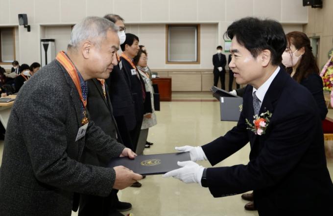 ÇÑÆí, ±è´ëÁß ±³À°°¨Àº ÀÌ ÀÚ¸®¿¡¼ ¿µ¿¹·Î¿î ÈÆ․Æ÷ÀåÀ» ¹ÞÀº ¼ö»óÀÚ¿Í °¡Á·µé¿¡°Ô Á¸°æ°ú °¨»çÀÇ ¸¶À½À» ÀüÇϸç, ¡°Àλý ÈĹÝÀüÀÇ Ãâ¹ßÀ» ÃàÇÏÇÏ°í ¾ÕÀ¸·Îµµ ¡®Àü³²±³À° ´ëÀüȯ¡¯ÀÇ ±æ¿¡ ¼±¹è ±³À°Àڷμ °æ·û°ú ÁöÇý¸¦ º¸Å´޶ó.¡±°í ´çºÎÇß´Ù.