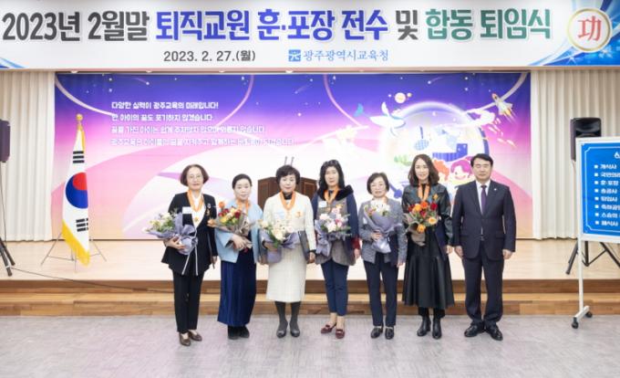 ÀÌÁ¤¼± ±³À°°¨Àº ¼Û°ø»ç¸¦ ÅëÇØ ¡°ÇлýµéÀÌ °¢ÀÚÀÇ Æ¯¼º¿¡ ¸Â´Â ¿Ã¹Ù¸¥ ¹æÇâÀ¸·Î ³ª¾Æ°¥ ¼ö ÀÖµµ·Ï µ½´Â °ÍÀÌ ½º½ÂÀÇ ¿ªÇÒÀ̸ç, ¿À·£ ±â°£ ±³À° ÇöÀå¿¡¼ ÇлýµéÀÇ ¼ºÀå°ú ±¤ÁÖ±³À° ¹ßÀüÀ» À§ÇØ ³ë·ÂÇØÁֽŠÅðÁ÷±³¿øµéÀÇ °øÀûÀº ¿ì¸® ¸ðµÎ°¡ °£Á÷ÇØ¾ß ÇÒ ¼ÒÁßÇÑ ÀڻꡱÀ̶ó°í ÅðÁ÷±³¿øµéÀÇ °øÀûÀ» ±â¸®¸ç ¡°Ã¥ÀÓ±³À°°ú °øÁ¤±³À°À» ½ÇÇöÇϱâ À§ÇØ »õ·Ó°Ô º¯ÈÇϰí ÀÖ´Â ±¤ÁÖ±³À°¿¡ ´ëÇÑ ¾ÖÁ¤ ¾î¸° °ü½É°ú º¯ÇÔ¾ø´Â »ç¶ûÀ» ºÎʵ台´Ù¡±°í ´çºÎÇß´Ù.