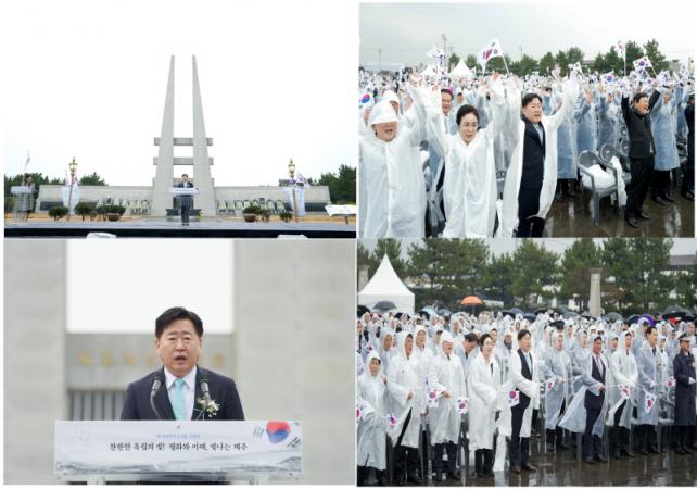 ÇÑÆí, ¿À¿µÈÆ Áö»ç´Â ±â³ä»ç¸¦ ÅëÇØ Á¶±¹ÀÇ ÀÚÀ¯¿Í µ¶¸³À» À§ÇØ Èñ»ýÇϰí Çå½ÅÇÑ ¼ø±¹¼±¿¿¡ °æÀǸ¦ Ç¥Çϰí, Á¦ÁÖÀÇ Ç×ÀÏ µ¶¸³¿îµ¿ÀÇ ¿ª»ç¸¦ Á¦´ë·Î ÀνÄÇÏ°í ±â¾ïÇØ¾ß ÇÑ´Ù°í °Á¶Çß´Ù.