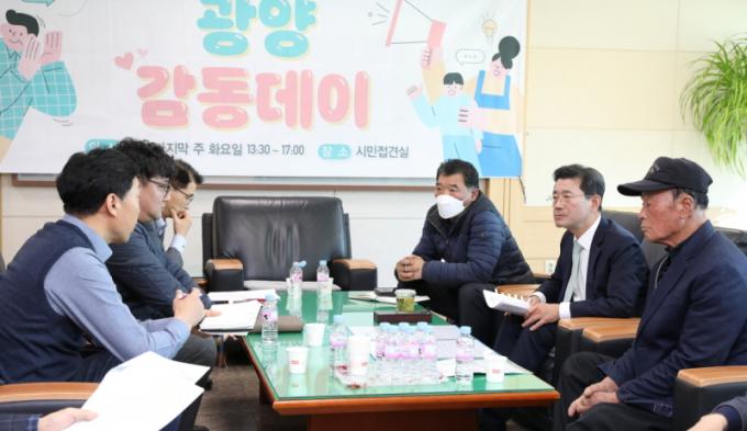 À̹ø °¨µ¿µ¥ÀÌ´Â 6ÆÀ 17¸íÀÇ ½Ã¹ÎÀÌ ¹æ¹®ÇØ ¡ã±¤¾çÀ¾ Á׸²¸® Æó±â¹°Ã³¸®¾÷ ´ëÃ¥ ¸¶·Ã ¿äû ¡ã¼Ò»ó°øÀÎ ¿ø½ºÅé Áö¿ø¼¾ÅÍ ¼³Ä¡ °ÇÀÇ ¡ã¼ºÈ²Ã¼À°°ü ÇÁ·Î±×·¥ ¿î¿µ °ü·Ã °ÇÀÇ ¡ã½ÃÀå°ü»ç Ȱ¿ë °ü·Ã °ÇÀÇ µî ÃÑ 10°ÇÀÇ ´Ù¾çÇÑ ½Ã¹Î °ÇÀÇ¿¡ ´ëÇØ ÀǰßÀ» ³ª´©°í ÇØ°áÃ¥À» °í¹ÎÇÏ´Â ½Ã°£À» °¡Á³´Ù.