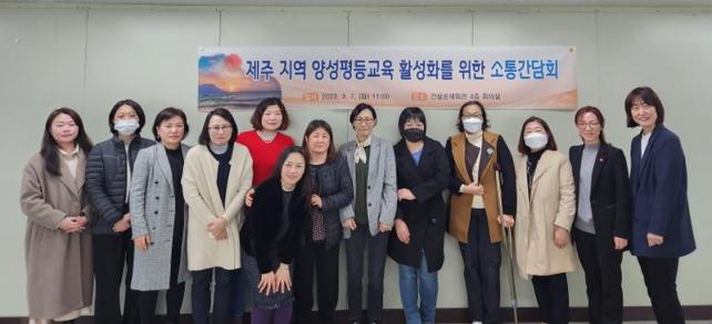 Áö¿ª»çȸ ¿©°Ç¿¡ ¸Â´Â ¾ç¼ºÆòµî±³À°ÀÇ Ã¼°èÀû ÃßÁøÀ» À§ÇØ ¸¶·ÃµÈ À̹ø °£´ãȸ¿¡´Â Á¦Á־缺Æòµî±³À°¼¾ÅÍ¿Í ¾ç¼ºÆòµî±³À°»ç¾÷ ÃßÁø±â°üÀÎ ©ÅÁ¦ÁÖ¿©¹Îȸ, Á¦ÁÖ¿©¼º»ó´ã¼Ò, Á¦ÁÖ¿©¼ºÀå¾ÖÀλó´ã¼Ò, Á¦ÁÖ¿©¼ºÀαǻó´ã¼Ò․½Ã¼³ÇùÀÇȸ, Á¦ÁÖYWCAÅëÇÕ»ó´ã¼Ò °ü°èÀÚ°¡ Âü¼®Çß´Ù.