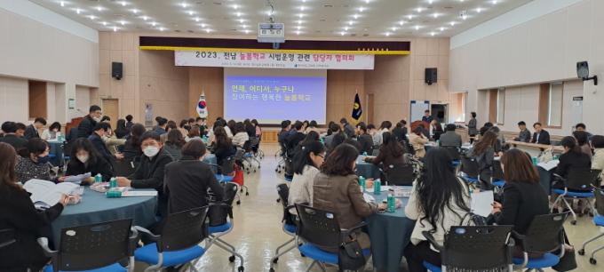 Àü¶ó³²µµ±³À°Ã»Àº 3¿ù 14ÀÏ(È) û»ç ´ëȸÀǽǿ¡¼ Àü³² ´Ãº½Çб³ 43°³ ½Ã¹ü¿î¿µ Çб³¿Í 22°³ ±³À°Áö¿øÃ» °£ ÇùÀÇȸ¸¦ °®°í È¿°úÀûÀÎ ´Ãº½Çб³ ¿î¿µ ¹æ¾ÈÀ» ¸ð»öÇß´Ù. ½Ã¹ü¿î¿µ Çб³ ±³°¨°ú ÇàÁ¤½ÇÀå, ±³À°Áö¿øÃ» ´ã´çÀÚ µî 110¿© ¸íÀÌ Âü¼®ÇÑ °¡¿îµ¥ ¿¸° À̳¯ ÇùÀÇȸ¿¡¼ Âü¼®ÀÚµéÀº 2023. Àü³² ´Ãº½Çб³ ¿î¿µ ÇöȲ°ú ÇâÈÄ ÃßÁø °èȹÀ» °øÀ¯Çϰí Çб³¿Í ±³À°Áö¿øÃ» °£ Çù·Â ¹æ¾ÈÀ» ÇùÀÇÇß´Ù.