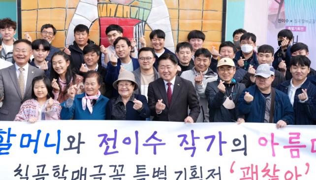 À̹ø Ưº°±âȹÀüÀº ¡®±¦Âú¾Æ¡¯¶ó´Â ÁÖÁ¦·Î 3¿ù 16ÀϺÎÅÍ 4¿ù 15ÀϱîÁö ÀüÀ̼ö ÀÛ°¡¿Í Ä¥°îÇҸű۲ÃÀ» °øµ¿ ÀÛ¾÷ÇÑ ÀÛǰ 40¿©Á¡°ú Ä¥°îÇҸű۲à ½ÃÈ 5Á¡À» Àü½ÃÇÑ´Ù. ¿ÃÇØ 15¼¼ÀÎ ÀüÀ̼ö ±ºÀº 2013³â Á¦ÁÖ·Î ÀÌÁÖÇØ ÀÛǰȰµ¿À» À̾´Â µ¿ÈÀÛ°¡·Î 2018³â ÅÚ·¹ºñÀü ÇÁ·Î±×·¥¿¡ ÃÖ¿¬¼Ò µ¿ÈÀÛ°¡·Î ¼Ò°³µÆÀ¸¸ç, ÇöÀç±îÁö µ¿ÈÃ¥ ¹× ¿¡¼¼ÀÌÁý 11±ÇÀ» Ãâ°£Çß´Ù. ƯÈ÷ °É¾î°¡´Â ´Á´ëµé °¶·¯¸®¸¦ ¿î¿µÇÏ¸ç ¾ò´Â ¼öÀÍÀ» Á¦ÁÖ ¹ÌÈ¥¸ð¼¾ÅÍ, ¹Ì¾á¸¶ ³¹ÎÇб³, ±¹°æ¾ø´Â ÀÇ»çȸ¿¡ ±âºÎÇÏ´Â µî ´Ù¾çÇÑ »çȸ°øÇå Ȱµ¿À» Çϰí ÀÖ´Ù. ÀüÀ̼ö ÀÛ°¡´Â ¡°ÇҸӴϵéÀÇ ±íÀº »îÀÇ ÈçÀûÀÌ ¹è¾îÀִ ĥ°îÇҸű۲ðú ÀúÀÇ ±×¸²À» ÇÔ²² Àü½ÃÇÒ ¼ö ÀÖ°Ô µÅ ¸Å¿ì ¶æ±í´Ù¡±¸ç ¡°ÇҸӴϵéÀÇ ¼û°áÀÌ À̰÷ Á¦ÁÖ¿¡¼µµ ¸¹Àº »ç¶÷ÀÇ °¡½¿¿¡ µû¶æÇÑ ¿Â±â·Î ´À²¸Á³À¸¸é ÁÁ°Ú´Ù¡±°í ¼Ò°¨À» ÀüÇß´Ù. ¿À¿µÈÆ Áö»ç´Â À̳¯ Ãà»ç¸¦ ÅëÇØ Á¦ÁÖ¿¡¼ Ưº°±âȹÀüÀÌ ¿¸®´Â °Í¿¡ °¨»ç¸¦ ÀüÇÏ°í ±èÀç¿í Ä¥°î±º¼ö¿Í ÇÔ²² ³«µ¿° ¹°°ú Á¦ÁÖµµ ¹Ù´å¹°À» ÇÕÄ¡´Â ¼¼¸®¸Ó´Ï¸¦ ÅëÇØ ¼ÒÅë°ú ÈÇÕÀÇ ¸Þ½ÃÁö¸¦ ÀüÇß´Ù. ¿À¿µÈÆ Áö»ç´Â ¡°Æ¯º°±âȹÀüÀ» ÅëÇØ 10´ë¿Í 80´ë°¡ ¼¼´ë¸¦ ³Ñ¾î ¿ì¸®°¡ ²Þ²Ù´Â »çȸÀÇ ¹Ì·¡¸¦ ´õ µû¶æÇÑ ½Ã¼±À¸·Î ¹Ù¶óº¸´Â ±âȸ°¡ µÇ±â ¹Ù¶õ´Ù¡±¸ç ¡°À̰°Àº ¹®ÈÇà»ç¸¦ ÅëÇØ ¾ç Áö¿ª ÁֹεéÀÌ Çàº¹ÇØÁö°í, Ưº°ÇÑ Àο¬À» °è¼Ó ¸¸µé¾î°¬À¸¸é ÁÁ°Ú´Ù¡±°í µ¡ºÙ¿´´Ù. ÇÑÆí, ±èÀç¿í °æ»óºÏµµ Ä¥°î±º¼ö´Â ¡°±×¸²°ú ±Û ÀÛǰµéÀÌ °·ÄÇϸ鼵µ ÀÚ¿¬½º·´°Ô ´À²¸Áö´Â °ÍÀº Á¶È·Î¿î ûÁ¤Á¦ÁÖÀÇ ÀÚ¿¬À» ´à¾Æ¼ ÀÎ °Í °°´Ù¡±¸ç ¡°À̹ø Àü½Ã°¡ ¹®Èµµ½Ã¸¦ ¼±µµÇϰí ÀÖ´Â Á¦ÁÖÀÇ Á¤Ã¥À» °æÇèÇÒ ¼ö ÀÖ´Â °è±â°¡ µÇ¾î Ä¥°î ¹®Èµµ½Ã Á¶¼ºÀ» À§ÇÑ ±³·ù°¡ È®´ëµÇ±â¸¦ ¹Ù¶õ´Ù¡±°í ¸»Çß´Ù.
