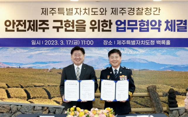 µÎ ±â°üÀº 17ÀÏ ¿ÀÀü 11½Ã Á¦ÁÖµµÃ» ¹é·ÏȦ¿¡¼ ¾ÈÀüÁ¦ÁÖ ±¸ÇöÀ» À§ÇÑ ¾÷¹«Çù¾àÀ» ü°áÇϰí, º¸´Ù ¾ÈÀüÇÑ Áö¿ª»çȸ ȯ°æÀ» Á¶¼ºÇϱâ À§ÇÑ »óÈ£ Çù·Â¿¡ ¶æÀ» ¸ð¾Ò´Ù. À̳¯ Çù¾àÀ» °è±â·Î Á¦ÁÖµµ¿Í Á¦ÁÖ°æÂûûÀº ¡â¹üÁËÀ² °³¼±À» À§ÇÑ ¹üÁË¿¹¹æ Çù·Â °È ¡â¹üÁË¡¤»ç°í ´Ù¹ß À§ÇèÁö¿ª ÁýÁß °ü¸® ¡âÁö¿ªÁֹΰú ÇÔ²²ÇÏ´Â ¹Î°£ ±â´É Ȱ¼ºÈ µîÀ» µµ¸ðÇÑ´Ù.