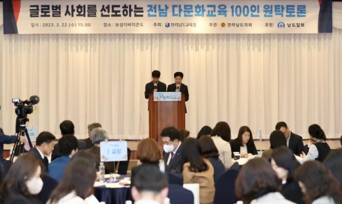 ±è´ëÁß ±³À°°¨Àº ¡°2023³â Àü³²±³À° ´ëÀüȯÀÇ ¿ø³âÀ» ¸Â¾Æ ´Ù¹®È±³À°µµ »õ·Î¿î ÆÐ·¯´ÙÀÓÀ¸·Î ¹Ù²î¾î¾ß ÇÑ´Ù´Â Ãø¸é¿¡¼ ÀÌÁß¾ð¾î±³À°ÀÇ Çʿ伺ÀÌ °Á¶µÇ°í ÀÖ´Ù.¸é¼, ¿À´Ã 100ÀÎ ¿øÅ¹ Åä·ÐÀÚµéÀÇ ½ÉµµÀÖ´Â Åä·Ð ³»¿ëÀ» ¾ÕÀ¸·Î ´Ù¹®È±³À° Á¤Ã¥¿¡ Àû±Ø ¹Ý¿µÇϰڴÙ.¡±°í ¸»Çß´Ù.