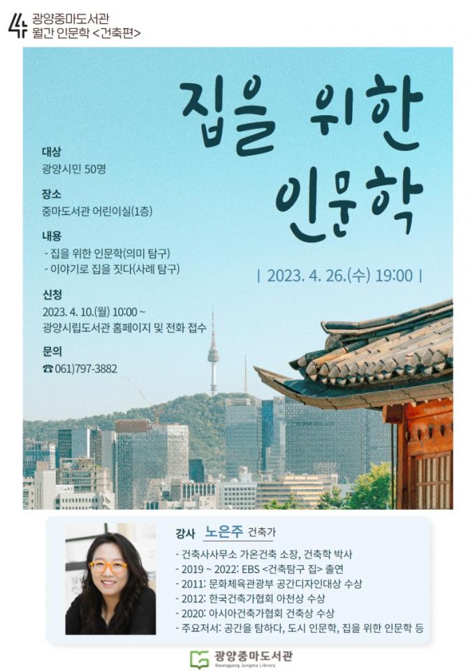 ¡®¿ù°£ Àι®ÇС¯ 2Â÷ °¿¬Àº ¿À´Â 4¿ù 10ÀÏ ¿ÀÀü 10½ÃºÎÅÍ ±¤¾ç½Ã¸³µµ¼°ü ȨÆäÀÌÁö¿Í ÀüÈ Á¢¼ö¸¦ ÅëÇØ ½ÅûÇÒ ¼ö ÀÖÀ¸¸ç, ±âŸ ±Ã±ÝÇÑ »çÇ×Àº ÀüÈ(¢Ï061-797-3882)·Î ¹®ÀÇÇϸé ÀÚ¼¼È÷ ¾Ë ¼ö ÀÖ´Ù.