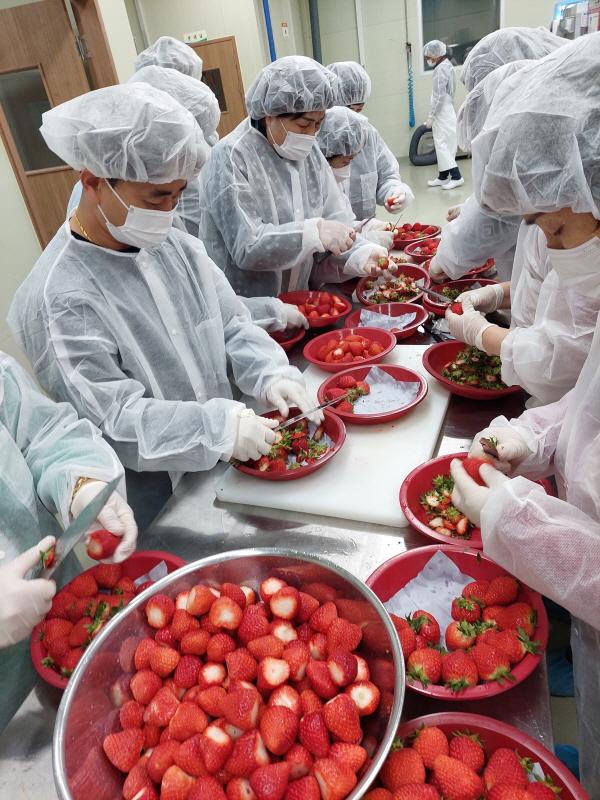 ³ó½Äǰ°¡°ø â¾÷±³À° ½ÉȹÝ(7±â) ±³À°»ýÀº 39¸íÀ¸·Î ³ó¾÷Àα³À°°ü°ú ³ó»ê¹°°¡°ø¼¾ÅÍ¿¡¼ °¡°ø ÀåºñÀÇ Á¾·ù ¹× Ȱ¿ë ¹æ¹ý¿¡ ´ëÇÑ ÀÌ·Ð ±³À°°ú °ÇÁ¶, ÂøÀ¯, Àë, Á©¸®, °úÀÚ·ù µî °¡°ø¡¤ Æ÷Àå ½Ç½ÀÀ» ÇÏ°Ô µÈ´Ù.