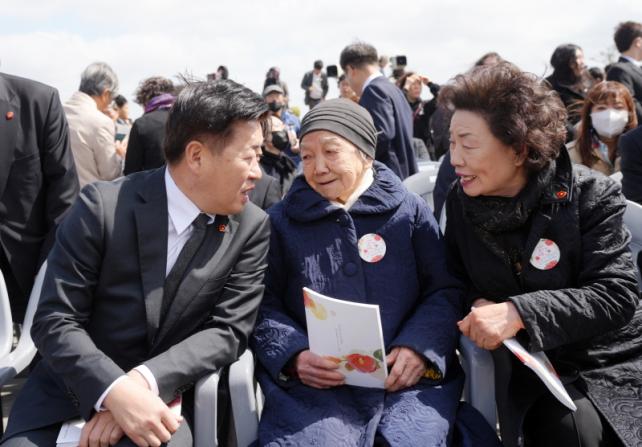 º»Çà»ç ¸¶Áö¸· Ã߸𹫴뿡¼´Â ¹ÂÁöÄà ¹è¿ì ±è¼ÒÇö°ú ÀÌ¿¹Àº ¾î¸°ÀÌ(µµÆòÃʵîÇб³ 3Çгâ)°¡ 4¡¤3ÁøÈ¥°îÀ» ÇÔ²² ºÒ·¶´Ù. ½ÄÈÄÇà»çÀÎ ¹®ÈÁ¦¿¡¼´Â °¡¼ö ¼Û°¡ÀÎÀÌ ¡®¿ùÇϰ¡¾à¡¯°ú ¡®¾ö¸¶ ¾Æ¸®¶û¡¯, °¡¼ö ÀÌÁ¤ÀÌ ¡®±¤¾ß¿¡¼¡¯¿Í ¡®°È°í ½Í´Ù¡¯¸¦ ³ë·¡Çϰí, µµ¸³¹«¿ë´ÜÀÌ 4¡¤3±â·Ï¹° ¼¼°è±â·ÏÀ¯»ê µîÀç ±â¿øÀÇ ¿°¿øÀ» ¸öÁþÀ¸·Î Ç¥ÇöÇß´Ù. µµ¿Ü °ÅÁÖ À¯Á·ÀÇ À̾߱⸦ ¼Ò°³ÇÏ´Â ½Ã°£À» ÅëÇØ ÀÓÃæ±¹(1944³â»ý)¾¾°¡ ¡®·¹µå ÄÞÇ÷º½º¡¯¿Í ¿¬ÁÂÁ¦·Î ¾ÆÇÄÀ» °Þ¾ú´ø Áö³³¯ÀÇ ¾ÆÇ À̾߱⸦ ÀüÇß´Ù. ´õºÒ¾î Èï»êÃÊ ¾ÆÀ̵é(Èï»êÃʵîÇб³ 6Çгâ 6¸í, ÀüÁø¼ö ¼±»ý´Ô µî 2¸í)ÀÌ Á÷Á¢ ÀÛ°îÇÑ ¡®µ¿¹éÀÌ µÇ¾î ´Ù½Ã ¸¸³ª¸®¡¯ °ø¿¬¿¡ ÀÌ¾î µµ¸³ÇÕâ´Ü°ú 4¡¤3ÆòÈÇÕâ´ÜÀÇ ¡®ÀáµéÁö ¾Ê´Â ³²µµ¡¯¸¦ Âü¼®ÀÚµé°ú ÇÔ²² ³ë·¡Çϸç Ãß³ä½ÄÀ» ¸¶¹«¸®Çß´Ù.
