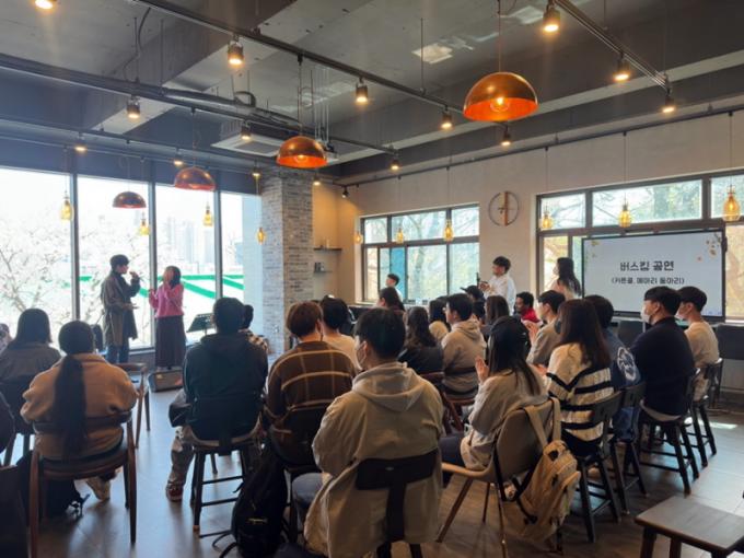 Áö³ 29ÀÏ ¿ÀÈÄ 1½Ã ±¹Á¦±³·ù±³À°º»ºÎ ±Û·Î¹úÄ«Æä(Global Cafe)¿¡¼ Çà»ç¸¦ ¿°í ¸Þ¾Æ¸®, ĿưÄÝ µî ±³³» µ¿¾Æ¸®¸¦ ÃÊûÇÏ¿© ¹ö½ºÅ· °ø¿¬°ú ³»¡¤¿Ü±¹ÀÎ ÇлýÀÌ ±³·ùÇÒ ¼ö ÀÖ´Â ´Ù¾çÇÑ È°µ¿À» ÁøÇàÇÏ¿´´Ù. ÇлýµéÀº Çѱ¹¾î¿Í ¿µ¾î¸¦ »ç¿ëÇÏ¿© ¼·Î ÆÀÀ» ÀÌ·ï °¢Á¾ °ÔÀÓÀ» Áñ±â°í, º¢²ÉÀÌ È°Â¦ ÇÉ ±³Á¤¿¡¼ ±â³ä ÃÔ¿µ°ú »çÁø²Ù¹Ì±â üÇèÀ» ÇÏ¸ç ¿ìÁ¤À» ´ÙÁ³´Ù.