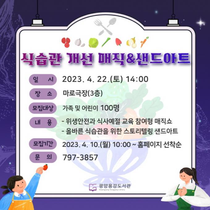 ¿ë°µµ¼°üÀº ¿À´Â 10ÀϺÎÅÍ ±¤¾ç½Ã¸³µµ¼°ü ´©¸®Áý¿¡¼ ¾î¸°ÀÌ¿Í °¡Á·À» ´ë»óÀ¸·Î °ø¿¬ °ü¶÷ Èñ¸ÁÀÚ¸¦ ¸ðÁýÇϸç, °ø¿¬¿¡ ´ëÇÑ ±Ã±ÝÇÑ »çÇ×Àº ½Ã¸³µµ¼°ü ´©¸®ÁýÀ» ¹æ¹®Çϰųª ¿ë°µµ¼°ü(¢Ï061-797-3857)À¸·Î ¹®ÀÇÇϸé ÀÚ¼¼È÷ ¾È³»¹ÞÀ» ¼ö ÀÖ´Ù.