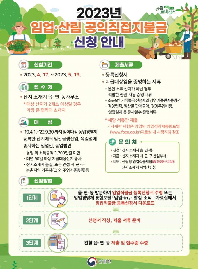 ½Åû ´ë»óÀÚ´Â ½Åû¼¿Í Áõºù¼·ù¸¦ °®Ãç ÀÓ¾÷Á÷ºÒ±Ý Áö±Þ ´ë»ó »êÁö°¡ ÀÖ´Â À¾¸éµ¿¿¡ ¿À´Â 17ÀϺÎÅÍ 5¿ù 19ÀϱîÁö ½ÅûÇÏ¸é µÈ´Ù.ÀÓ¾÷Á÷ºÒ±ÝÀº »êÁö¿¡¼ Àӻ깰»ý»ê¾÷, À°¸²¾÷¿¡ Á¾»çÇÏ´Â ÀÓ¾÷ÀÎ, ³ó¾÷¹ýÀÎÀÌ ÀÚ°Ý ¿ä°ÇÀ» °®Ã߸é Áö±ÞÇϰí ÀÖ´Ù.