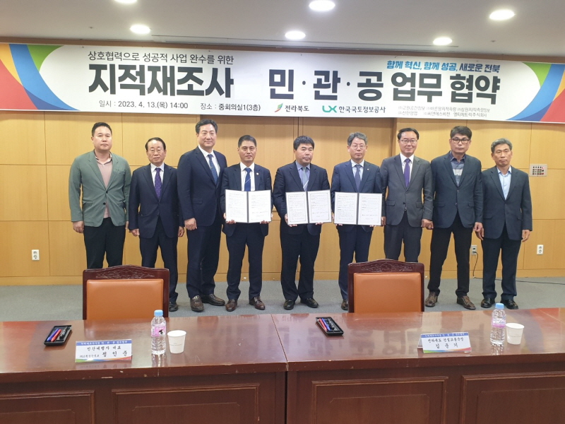 ÀüºÏµµ´Â 13ÀÏ Çѱ¹±¹ÅäÁ¤º¸°ø»ç(LX) ÀüºÏº»ºÎ¿Í ¹Î°£´ëÇàÀÚ ¢ß°í¿ø°ø°£Á¤º¸ µî 6°³ ¾÷ü°¡ Âü¿©ÇÑ °¡¿îµ¥ ÁöÀûÀçÁ¶»ç»ç¾÷À» ¼º°øÀûÀ¸·Î ÃßÁøÇϱâ À§ÇÑ ¡®¹Î‧°ü‧°ø ¾÷¹«Çù¾à¡¯À» ü°áÇß´Ù°í ¹àÇû´Ù.