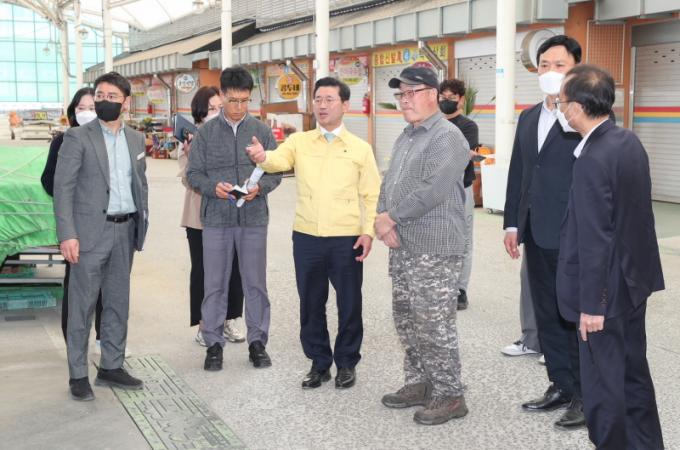 ÀÌ¾î ¿Á°î 5ÀϽÃÀå °ÇÀÇ ÇöÀåÀ» ¹æ¹®ÇØ ½ÃÀå »óÀεéÀÇ ÀǰßÀ» Á÷Á¢ µè°í ÇÔ²² ÇöÀåÀ» µÑ·¯ºÃ´Ù. ¿Á°î 5ÀϽÃÀå ³» ÀϺΠ±¸°£ ¹Ù´ÚÀÌ ³ëÈÄÈ µÅ ½ÃÀå À̿밴µéÀÇ ÅëÇà ºÒÆí°ú Á¡Æ÷ À¯Áö°ü¸®¿¡ ¾î·Á¿òÀÌ Ä¿ ¾î¹°Àü ¹Ù´Ú ÀçÆ÷Àå µîÀ» ¿äûÇÑ °ÇÀÇ¿¡ µû¶ó °ü°èºÎ¼¿Í ÇöÀåÀ» Á÷Á¢ È®ÀÎÇϰí ÀǰßÀ» ³ª´©¸ç ÇØ°á¹æ¾ÈÀ» ¸ð»öÇß´Ù.