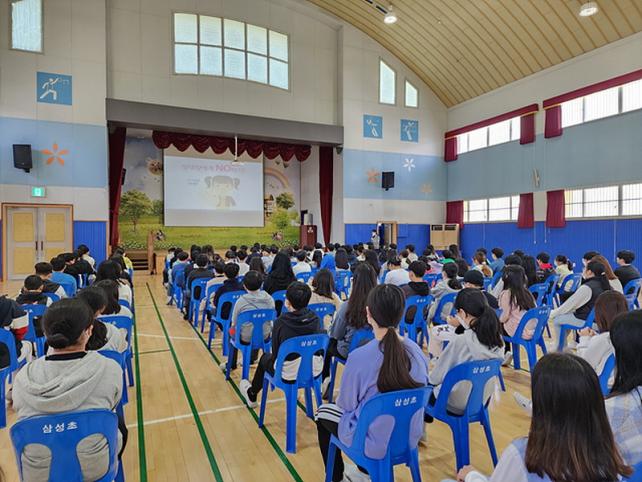 [½Ã»çÁ¾ÇսŹ® = °í¼º¹Î ±âÀÚ] »ï»ï¼ºÃʵîÇб³(±³Àå ÀÌÁø°æ)´Â 4¿ù 17ÀÏ(¿ù) 6Çгâ ÇлýµéÀ» ´ë»óÀ¸·Î Çб³Æø·Â¿¹¹æ±³À°À» ½Ç½ÃÇß´Ù.