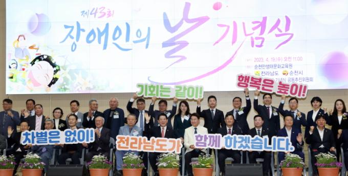 Àü³²µµ¿Í ¼øÃµ½Ã°¡ °øµ¿ ÁÖÃÖÇϰí Àü³²Àå¾ÖÀÎÀÇ ³¯ °øµ¿ÃßÁøÀ§¿øÈ¸(Áöü¡¤½Ã°¢¡¤³ó¾Æ)°¡ ÁÖ°üÇÑ ±â³ä½Ä¿¡´Â ±è¿µ·Ï Àü³²µµÁö»ç¿Í ¼µ¿¿í Àü³²µµÀÇȸ ÀÇÀå, ³ë°ü±Ô ¼øÃµ½ÃÀå, Àå¾ÖÀΰú Àå¾ÖÀÎ °¡Á· µî 2õ500¿© ¸íÀÌ Âü¼®Çß´Ù.