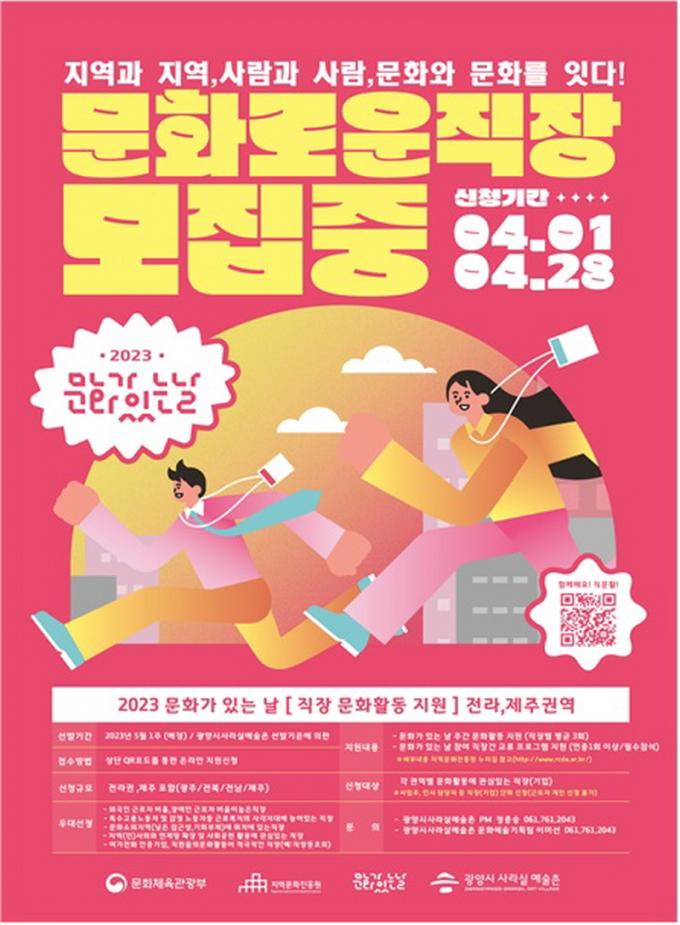 Âü¿© ¹æ¹ýÀº ±¤¾ç½Ã »ç¶ó½Ç ¿¹¼úÃÌ ¹êµå¿¡ °Ô½ÃµÈ ¸ðÁý°ø°í ±¸±ÛÆû°ú QRÄÚµå Á¢¼ÓÀ» ÅëÇÑ ¿Â¶óÀÎÀ¸·Î °¡´ÉÇϸç, ¹®È Ȱµ¿¿¡ °ü½É ÀÖ´Â ±â¾÷À̶ó¸é ´©±¸³ª ½ÅûÇÒ ¼ö ÀÖ´Ù.
