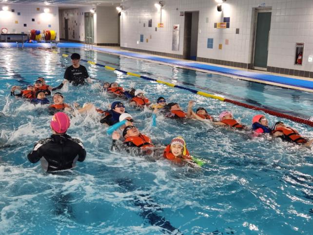 ÇÑÆí, À̹ø »ýÁ¸¼ö¿µ±³À°Àº Äڷγª19 ¹æ¿ª»óȲÀ¸·Î 2³â°£Àº ±³½Ç¿¡¼ À̷б³À° Áß½ÉÀ¸·Î ÁøÇàµÇ¾î¿À´Ù°¡ ¿ÃÇØ µé¾î¼¸ç ¼ö¿µÀå¿¡¼ ½Ç½ÃµÇ¾î ÇлýµéÀÌ Áñ°Ì°Ô Âü¿©Çϰí ÀÖ´Ù.