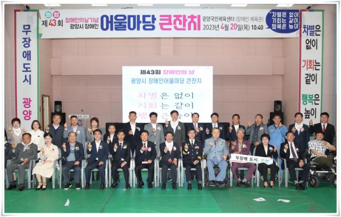 (»ç)Àü³²ÁöüÀå¾ÖÀÎÇùȸ ±¤¾ç½ÃÁöȸ°¡ ÁÖ°üÇÑ ¡®Àå¾ÖÀÎÀÇ ³¯¡¯ ±â³äÇà»ç´Â Àå¾ÖÀο¡ ´ëÇÑ ÀÌÇØ¸¦ ³ôÀ̰í, Àå¾ÖÀÎ °£ Ä£¼±±³·ù¿Í ÈÇÕÀÇ ÀåÀ» ¸¶·ÃÇÔÀ¸·Î½á ´õºÒ¾î »ç´Â »çȸ ºÐÀ§±â¸¦ Á¶¼ºÇϱâ À§ÇØ ¸¶·ÃµÆ´Ù.
