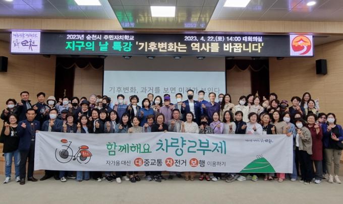 ÇÑÆí, ¼øÃµ½Ã ÁÖ¹ÎÀÚÄ¡Çб³¿¡ Âü¼®ÇÑ ÁÖ¹ÎÀÚÄ¡ À§¿øµéÀº 2023¼øÃµ¸¸±¹Á¦Á¤¿ø ¹Ú¶÷ȸ ¼º°ø°³ÃÖ¸¦ ±â¿øÇÏ´Â Â÷·®2ºÎÁ¦ ¿îµ¿°ú ÀÚ°¡¿ë ´ë½Å °È±â, ´ëÁß±³Åë, ÀÚÀü°Å ÀÌ¿ëÀ» »ýȰÈÇÏ´Â ´ë¡¤ÀÚ¡¤º¸ ½ÇõÀ» ´ÙÁüÇß´Ù.